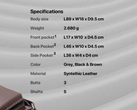 Holly købag med plass til 3 bakstykker og 5 forstykker.